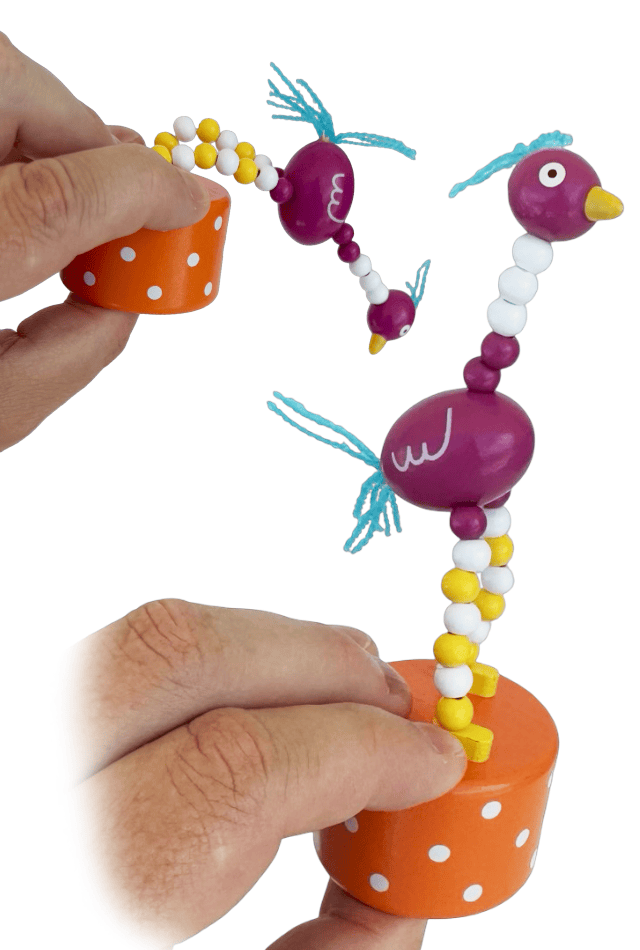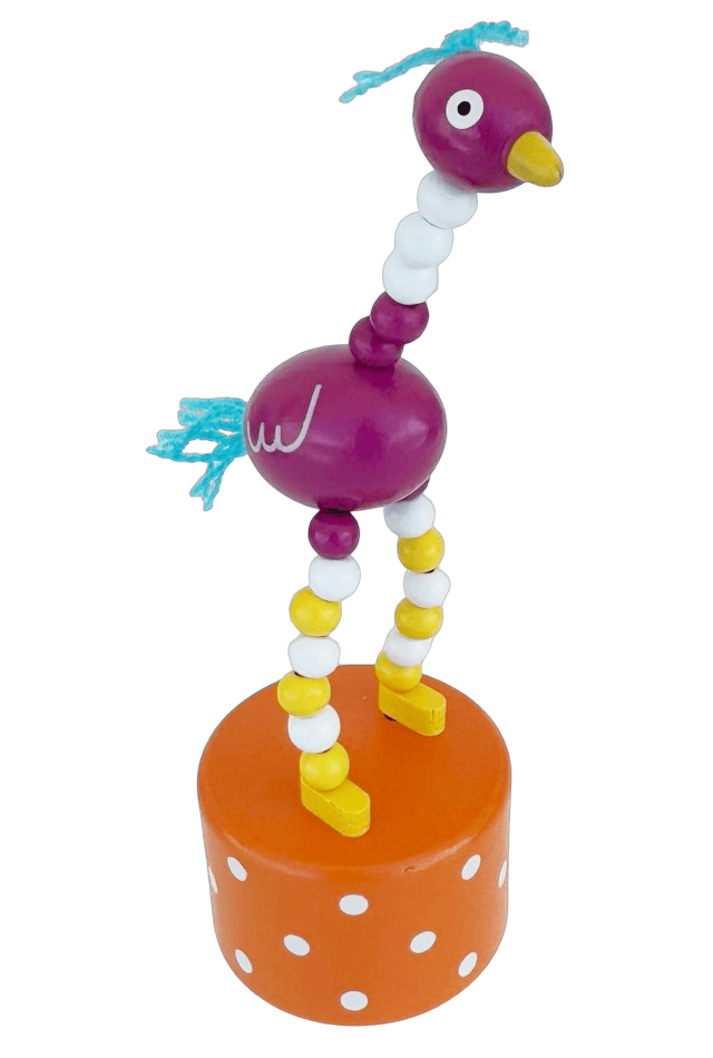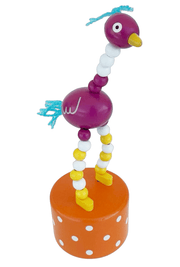 Purple Ostrich Wooden Thumb Push Puppet Toy