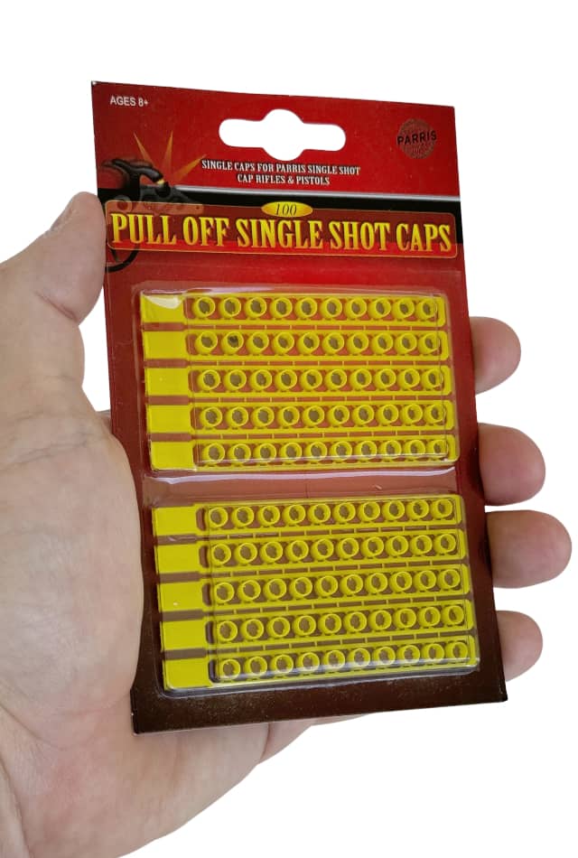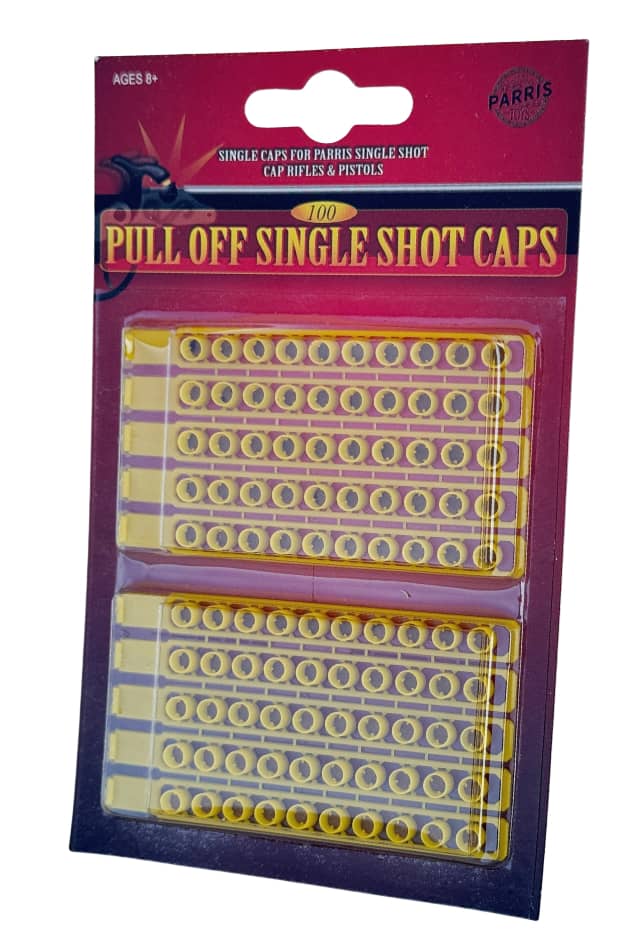 Don't forget your ammunition with our 100 Single Shot Caps Refill. Our Western 100 Single Shot Caps Refill works with single shot cap rifles, cap guns, and cap bombs. These caps will not work with antique cap guns.