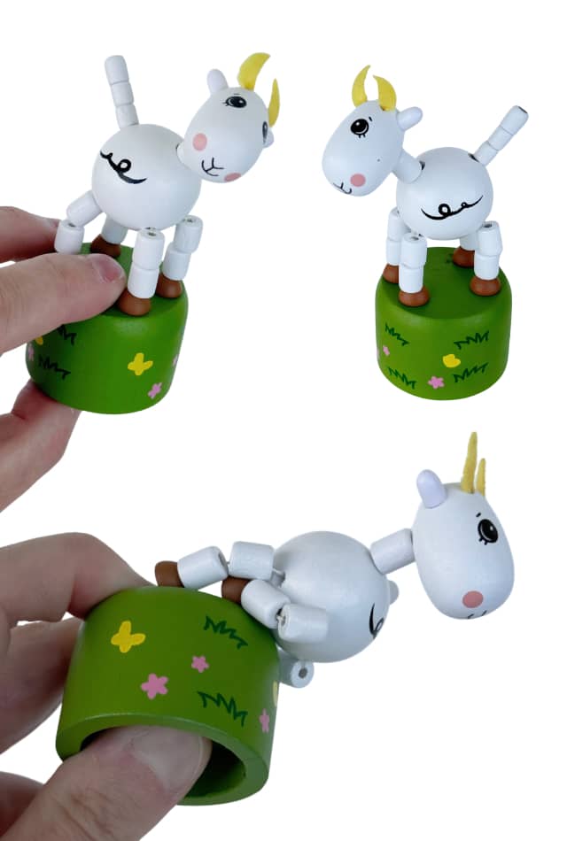 Fainting Goat Puppet Thumb Push Wooden Toy