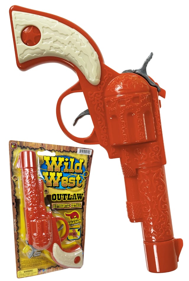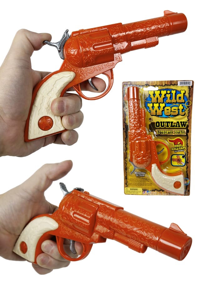 Outlaw Revolver Cap Gun : Orange Plastic : Paper Roll Caps