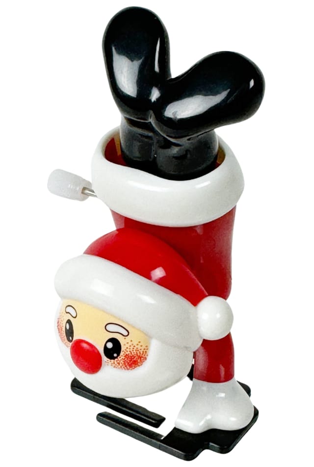 Santa Claus Handstand Windup really walks on his hands! Just wind up Santa and he wiggles his feet while he quickly steps forward, like a talented Hand Standing Gymnast. Santa wears his classic white and red Christmas suit. A great gift for Christmas and a unique stocking stuffer!